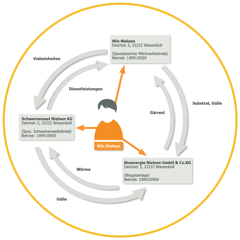 Das fiktive Unternehmen von Landwirt Nils Nielsen hat folgende Strukturen: