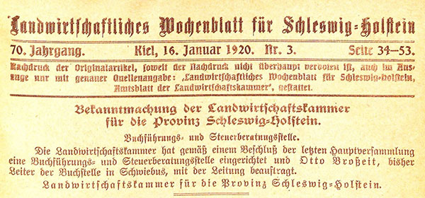 © Landwirtschaftliches Wochenblatt für Schleswig-Holstein vom 16. Januar 1920